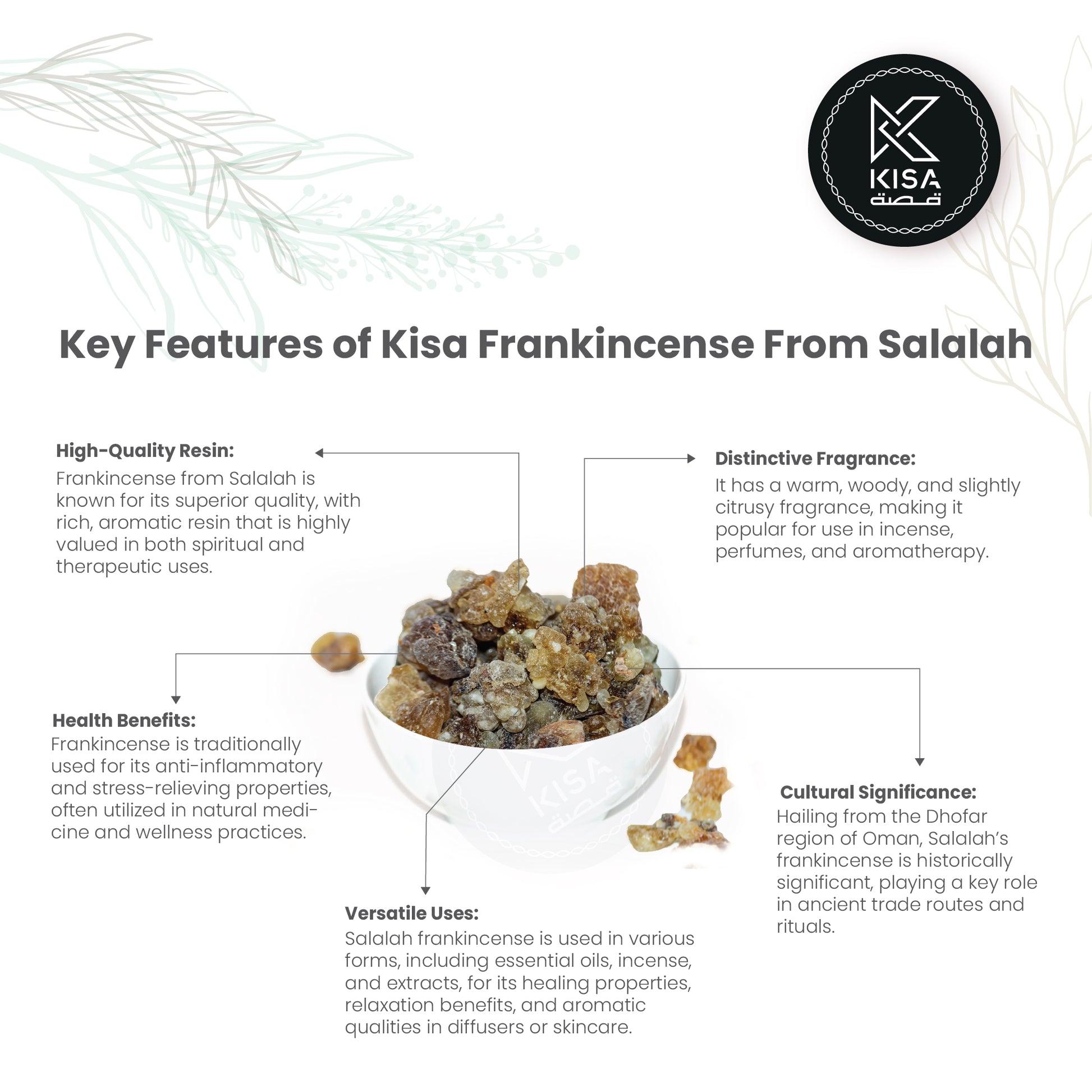 اللبان هو راتينج عطري يتم الحصول عليه من شجرة البوسويليا، وهو مشهور برائحته الخشبية الغنية وأهميته التاريخية. يستخدم اللبان غالبًا في البخور والزيوت الأساسية، ويشتهر بخصائصه المهدئة والمهدئة، مما يجعله خيارًا شائعًا في ممارسات العلاج بالروائح والتأمل. وبصرف النظر عن استخداماته العطرية، فهو موضع تقدير أيضًا لفوائده الصحية المحتملة، بما في ذلك التأثيرات المضادة للالتهابات ومضادات الأكسدة. استمتع بجوهر اللبان الساحر لرفع مستوى طقوسك الروحية أو تعزيز روتين العافية الخاص بك بخصائصه المهدئة.