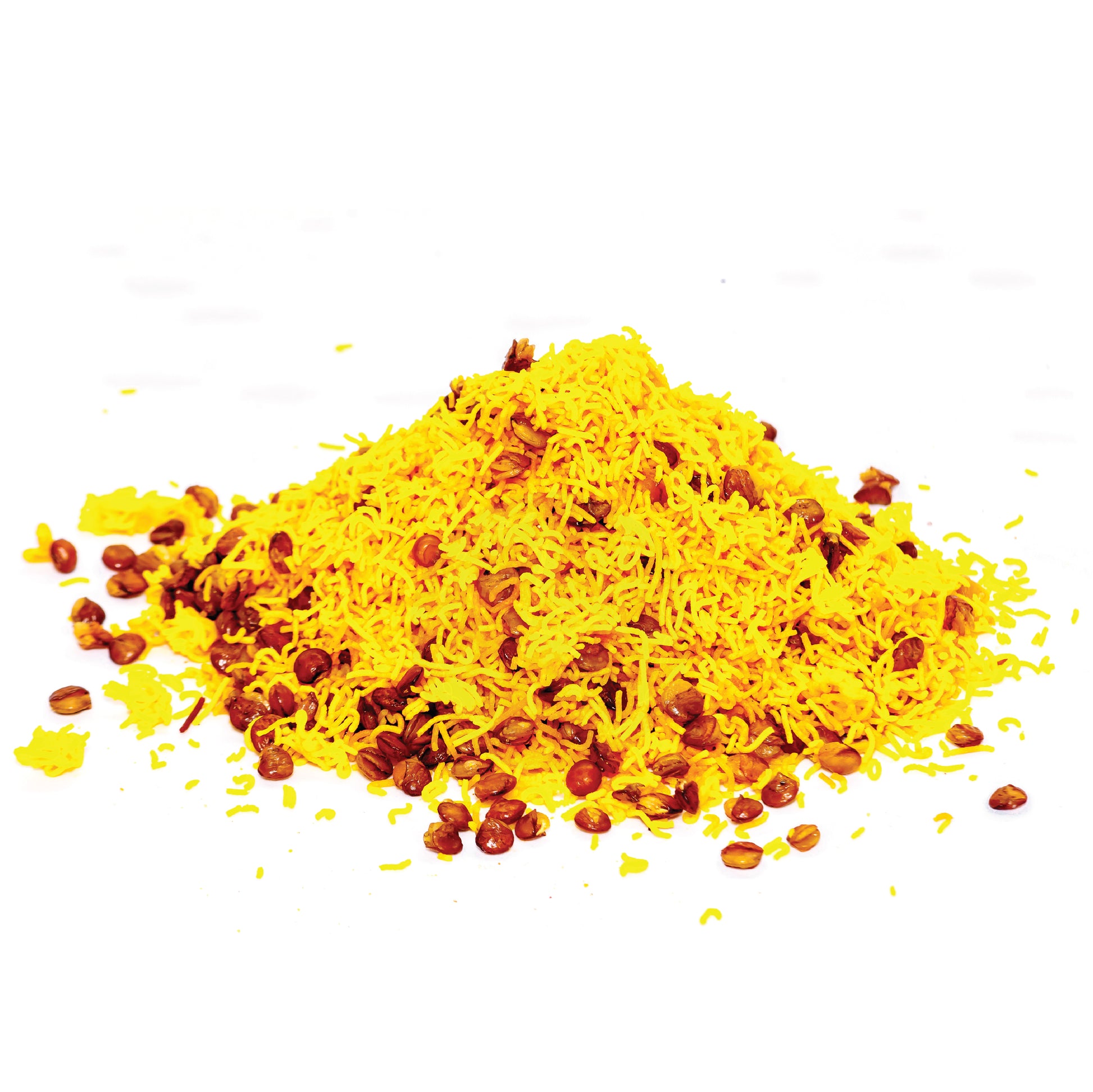 مزيج بومباي هو مزيج شعبي من الوجبات الخفيفة الهندية، يجمع بين سيف مقرمش وفول السوداني ونودلز دقيق الحمص ومزيج من التوابل لتجربة لذيذة وشهية. تشتهر هذه الوجبة الخفيفة المقرمشة بقوامها اللذيذ وطعمها اللاذع، مما يجعلها مثالية للاستمتاع بها بمفردها أو كإضافة للشات والسلطات. مع قرمشة مرضية وقليل من التوابل، يعد مزيج بومباي وجبة خفيفة رائعة لتناولها أو مشاركتها أو تحسين أطباقك المفضلة بلمسة أصيلة.