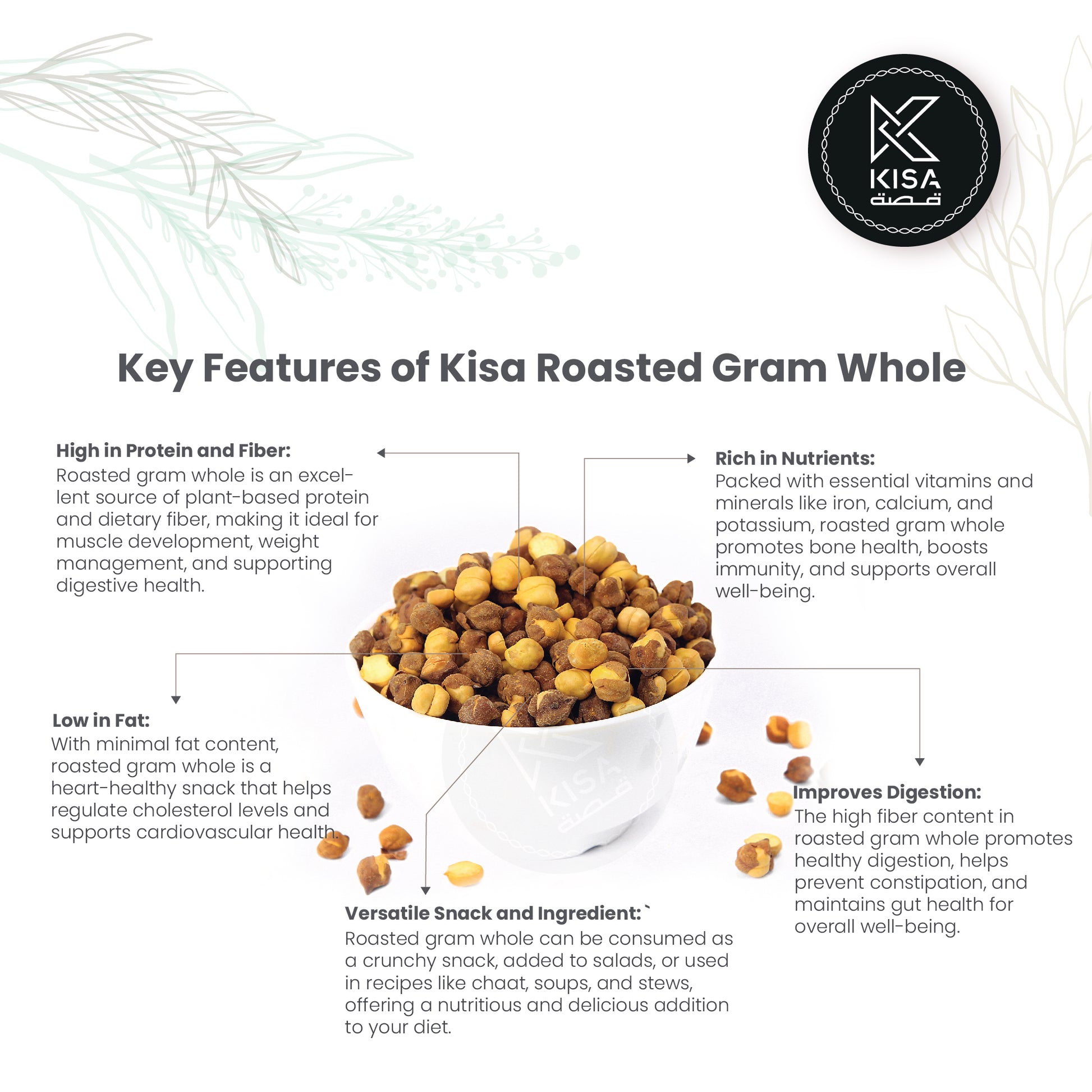 الحمص المحمص هو وجبة خفيفة مقرمشة ومغذية مصنوعة من الحمص الكامل الذي تم تحميصه لتعزيز نكهته وملمسه. غنية بالبروتين والألياف والعناصر الغذائية الأساسية، توفر هذه البقوليات قرمشة مرضية وطعمًا جوزيًا قليلاً. مثالية للتناول بمفردها، أو إضافتها إلى مخاليط المكسرات، أو دمجها في السلطات والحساء، الحمص المحمص هو خيار متعدد الاستخدامات وصحي لأولئك الذين يبحثون عن وجبات خفيفة لذيذة تعتمد على النباتات. مذاقها الجذاب وفوائدها الغذائية تجعلها خيارًا شائعًا للآكلين المهتمين بالصحة.
