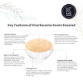 بذور السمسم الأبيض المحمصة هي بذور صغيرة ذهبية اللون تم تحميصها قليلاً لتعزيز نكهتها ورائحتها الجوزية الطبيعية. تبرز عملية التحميص هذه ثراءً أعمق، مما يجعلها إضافة رائعة لمختلف الأطباق. بذور السمسم الأبيض المحمصة غنية بالدهون الصحية والبروتين والعناصر الغذائية الأساسية، وغالبًا ما تستخدم كإضافة للسلطات والأطباق المقلية والمخبوزات، أو تُطحن في طحينة للصلصات والدهون. قوامها المقرمش ونكهتها المحسنة تجعلها مكونًا متعدد الاستخدامات، حيث تضيف كل من الطعم والتغذية إلى مجموعة واسعة من الإبداعات الطهوية.