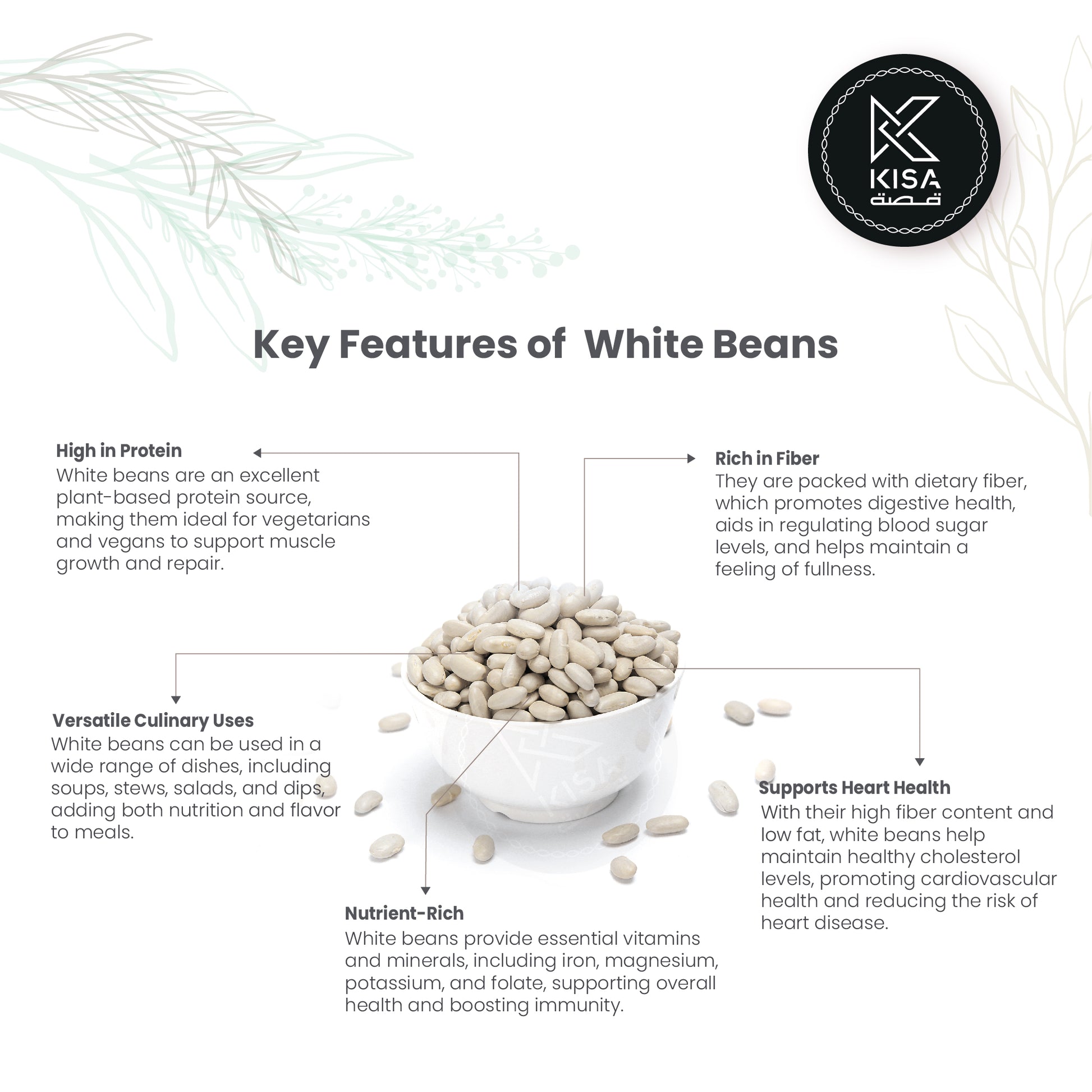 الفاصوليا البيضاء، المعروفة أيضًا باسم الفاصوليا البحرية أو الفاصوليا البيضاء، هي بقوليات صغيرة وكريمية معروفة بطعمها المعتدل وملمسها الناعم. غنية بالبروتين والألياف والعناصر الغذائية الأساسية، وهي إضافة مغذية لمجموعة متنوعة من الأطباق. يمكن استخدام الفاصوليا البيضاء في الحساء واليخنات والسلطات والطواجن، مما يضيف نكهة وطعمًا. تنوعها وقدرتها على امتصاص النكهات تجعلها مفضلة في الطبخ التقليدي والمعاصر، مما يساهم في إعداد وجبات صحية ومتوازنة.