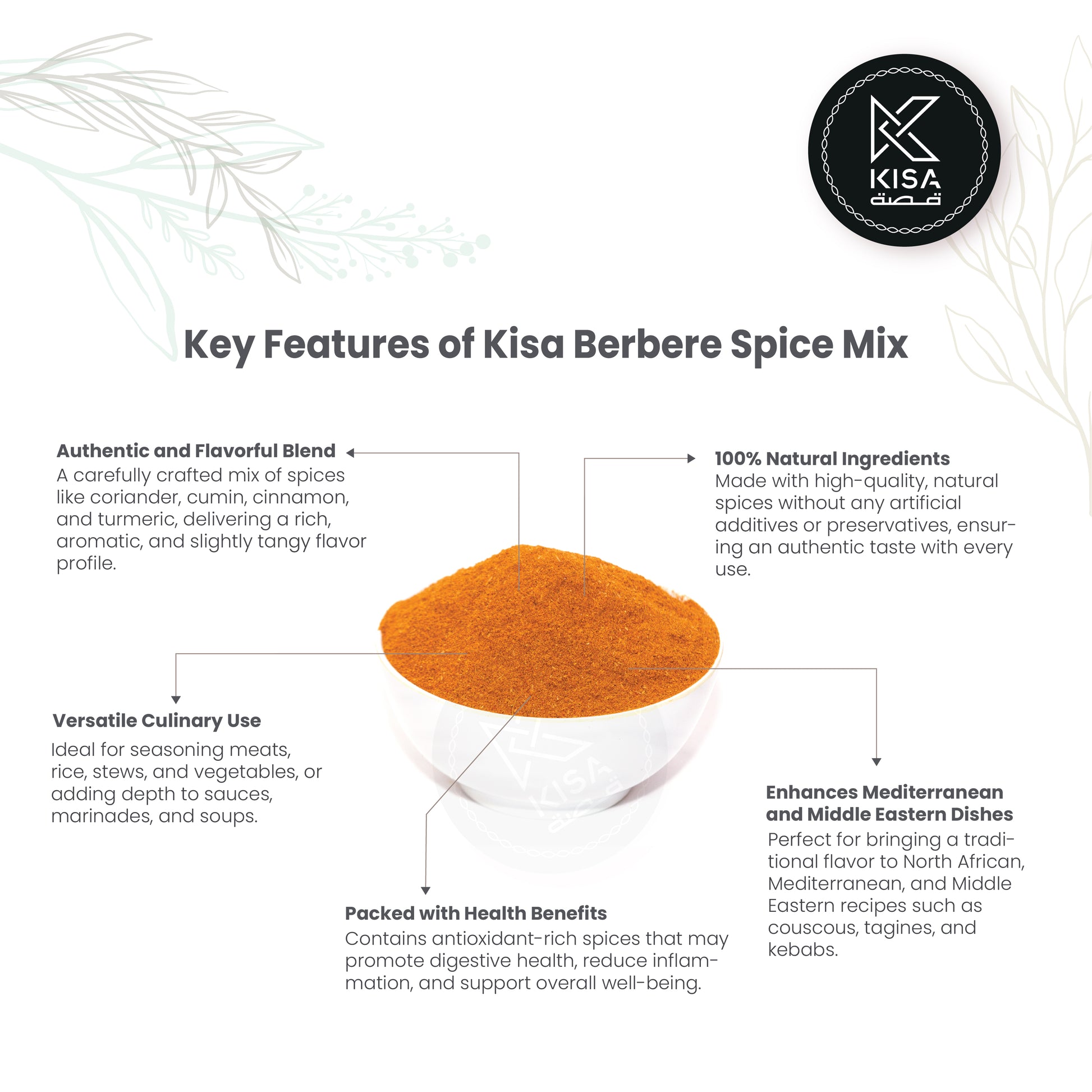 Berbere Spice Mix is a bold and aromatic blend of spices, including chili peppers, garlic, ginger, cinnamon, and fenugreek. Known for its rich, smoky, and slightly sweet flavor, it’s a staple in Ethiopian and North African cuisines. Perfect for seasoning meats, stews, lentils, and roasted vegetables, this versatile mix adds depth and warmth to a variety of dishes.