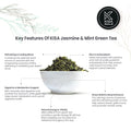 KISA Jasmine & Mint Green Tea is a refreshing blend of premium green tea leaves infused with the delicate fragrance of jasmine blossoms and the cool essence of mint. This soothing tea offers a perfect balance of floral sweetness and herbal freshness, making it both calming and invigorating. Rich in antioxidants, it helps detoxify the body, supports metabolism, and promotes glowing skin from within. The natural polyphenols in green tea enhance fat burning and improve digestion, while jasmine uplifts mood and relieves stress. Mint adds a cooling touch that aids in soothing the stomach and freshening breath. Drinking this tea regularly can boost immunity, enhance mental alertness, and reduce fatigue. Its gentle aroma and taste make it ideal for relaxation after meals or during meditation. KISA Jasmine & Mint Green Tea can be enjoyed hot or cold, offering a refreshing wellness experience any time of the day. Free from artificial additives, it delivers pure, natural goodness in every sip. A daily cup of this aromatic blend helps nurture both body and mind, promoting balance, freshness, and vitality.